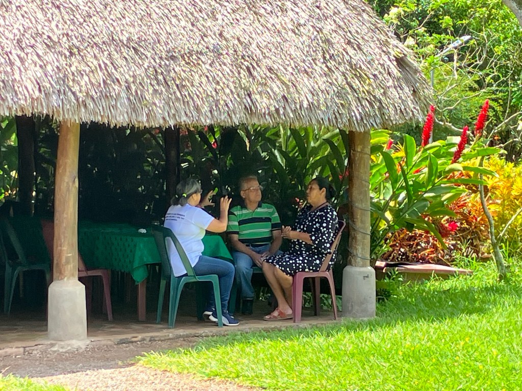 Doña Lola explaining the formation and development of the savings group to visitors from Venezuela